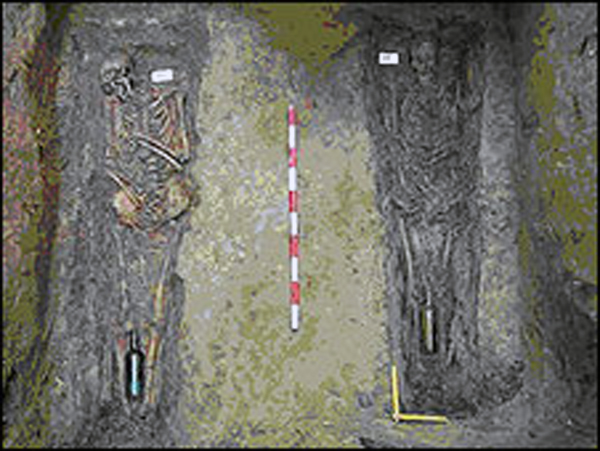 Entre las rodillas de cada uno de los restos óseos hay una botella de cristal donde yace el último aliento de los presos.