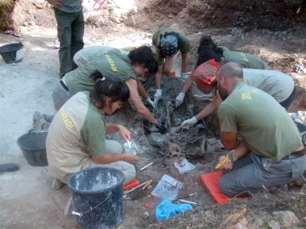 Exhumación en Rabanera del Pinar – 14-09-2009 El equipo dirigido por el forense Etxeberria desentierra uno de los cuerpos.–  FOTOS – ALFREDO SANZ DE MIGUEL