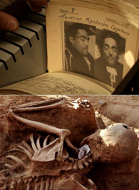20091030elpepicul_120091030elpepicul_2Fotogramas de Los caminos de la memoria, de José Luis Peñafuerte. Arriba, una ficha del futuro Centro de la Memoria de Salamanca, abajo, una excavación de la fosa de la Andaya.-