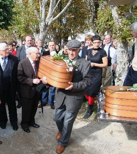 Emocionados, los familiares recogieron los pequeños féretros para acariciar a sus seres queridos, tras la espera de casi una vida. Los llevaron a dos coches fúnebres. Acto seguido, acompañados por cientos de vecinos de A Fonsagrada, el alcalde y el vicepresidente primero de la Diputación, Antón Bao, deambularon hasta el cementerio tras los vehículos.