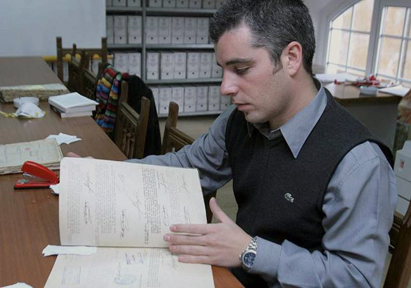 Santiago Macías consulta causas de la Guerra Civil en el Archivo Militar de Ferrol. / fran martínez