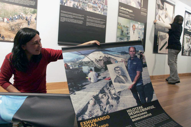 El forense Paco Etxeberria, director de Antropología de Aranzadi, es una de las personas que lidera, desde sus inicios, estos trabajos que pretenden rescatar la memoria histórica. No pudo acudir ayer a la inauguración de la exposición al encontrarse en Chile, pero, recientemente explicaba la razón de estas exhumaciones. «Aunque estemos exhumando fosas, en realidad estamos recuperando dignidadades. Lo que hay ahí dentro no es un objeto, es una persona que tenía una identidad, unos sentimientos, unos ideales y fue tratada injustamente: una cuando le mataron y otra en el tratamiento que le había dado la historia», señala.