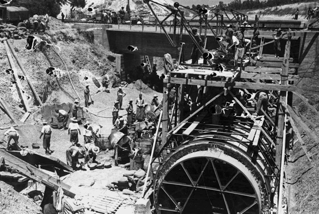 – Reconstruir la ruina. Se destruyó entre todos, se reconstruyó en buena parte con los perdedores. Los prisioneros republicanos, agrupados en batallones y unidades de trabajo, acometieron significativas obras, como se constata en los fondos del Tribunal de Cuentas. El batallón de trabajadores número 31, formado por 388 prisioneros, lo hizo en el aeropuerto de Labacolla, en Santiago. Cobraban en febrero de 1940, según lo firmado por el comisario de guerra, 2,50 pesetas diarias. Del campo de concentración de la plaza de toros de Zaragoza, donde se hacinaban 2.148 republicanos en abril de 1939, salió la mano de obra para trabajar en el pantano de la Muedra (189 prisioneros), el ferrocarril entre Soria y Castejón (299), las minas de Utrillas (199) y los puertos de Castellón y Vinaroz (393). La explotación laboral se mantuvo también con los presos de las cárceles -que sí habían sido juzgados y condenados- en un complejo entramado de cesión de mano de obra a instituciones y empresas privadas que haría las delicias de una empresa de trabajo temporal inmisericorde. Entre las obras más simbólicas legadas por este sistema figuran el Valle de los Caídos o el Canal del Guadalquivir, construidas ambas por presos que creían redimir penas.