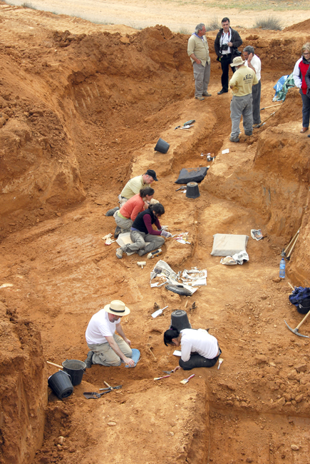 Por fin parece que hemos localizado el principio y el final de la fosa, pero tenemos que dejar de trabajar por la fuerte tormenta y la gran cantidad de lluvia.