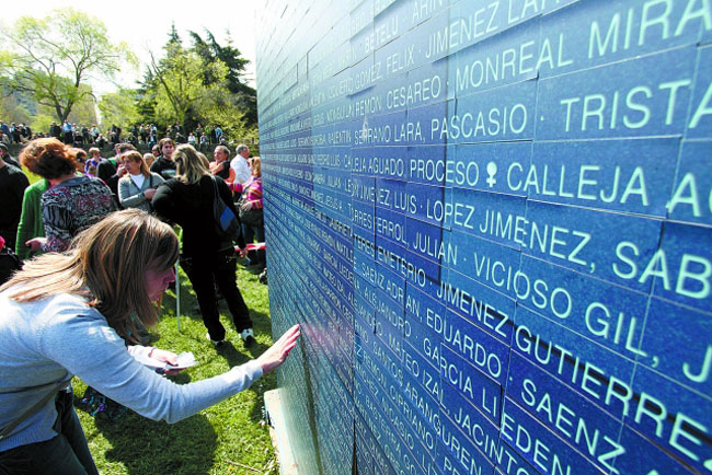 Familiares de los fusilados pudieron encontrar los nombres de las víctimas en un mural este año. CALLEJA