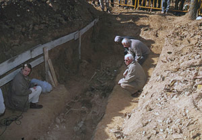 Imagen de la fosa común exhumada en Priaranza del Bierzo en octubre de 2000. [Foto: ARMH]