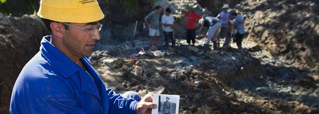 Un grupo de estudiantes de la Universidad de Burgos, dirigido por el profesor de Antropología, Ignacio Fernández Mata, trabaja en las labores de localización y exhumación de los cuerpos que se prolongará hasta el final de la semana.