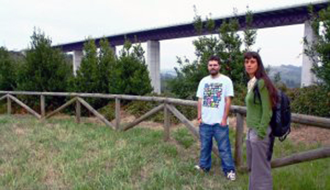 David Leis y Amaya Caunedo, junto en la zona en la que se encuentra la fosa. :: ADRI QUINTANA