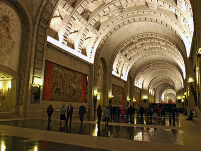 En los laterales de la entrada a la basílica reposan las cajas con restos de más de 30.000 muertos.tito jiménez
