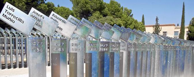«Recuérdalo tú, recuérdalo a otros». Estas palabras del poeta Luis Cernuda presiden el Memorial a las Víctimas de la Violencia Franquista que se inaugurará el próximo miércoles en el cementerio de Torrero. Un memorial en el que cada una de las 3.543 víctimas contabilizadas tiene un pequeño monolito de metal en el que figura su nombre, su edad y la fecha en que fue ejecutada. Si se saben estos datos, porque hay varios cientos de planchas de metal en los que figura simplemente ‘hombre’, ‘mujer’, o un apellido, como ‘Casorrán’.