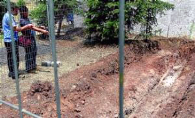 Dos personas señalan restos encontrados en excavaciones en una fosa ubicada junto al cementerio de – Foto:EL PERIODICO