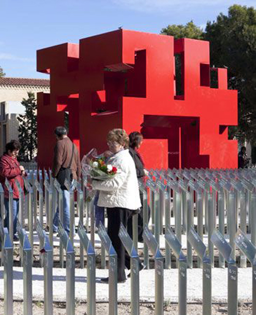 Los familiares asistieron ayer a la presentación del monumento que recuerda a las personas que fueron tiroteadas en las tapias del cementerio de Torrero