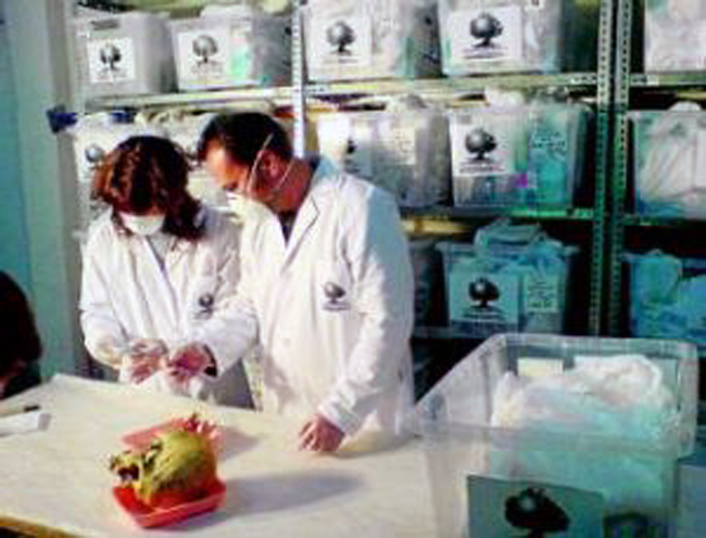 Técnicos del laboratorio toman muestras de la dentadura de uno de los represaliados. Foto:JOSE SIERRA