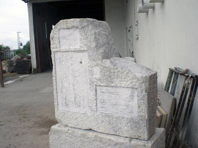 El monolito en fase de construcción, antes de ubicarlo dentro del cementerio de Pedro Bernardo./ Pedro Vicente Ramírez (Memoria Viva)