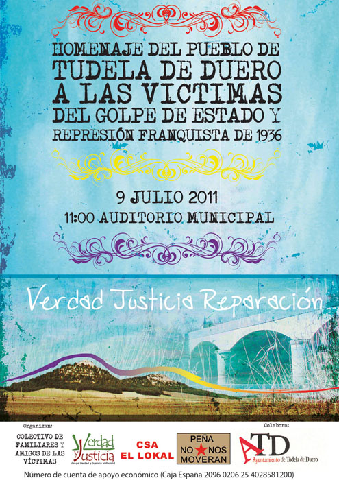 El sábado 9 de julio celebraremos el Homenaje a las víctimas de la sublevación franquista de 1936 en Tudela de Duero.