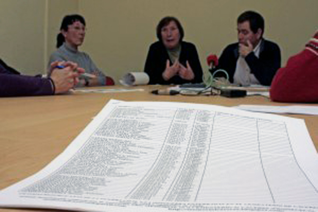 Listado de víctimas, con miembros de Promececa al fondo. ::HOY