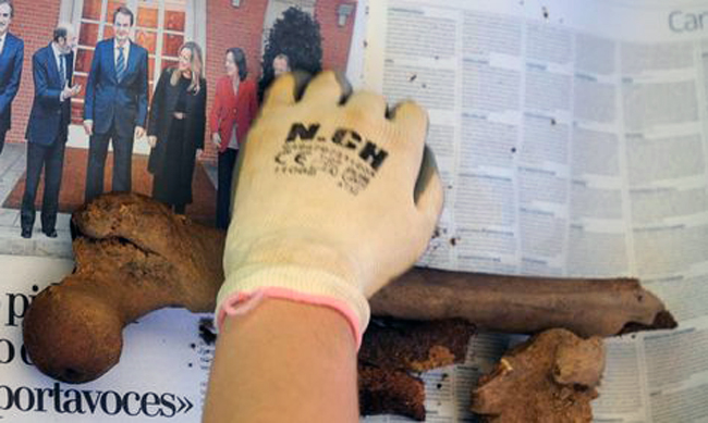 El papel de periódico preserva bien de la humedad los restos que se recuperan de la fosa y es económico, teniendo en cuenta el limitado o inexistente presupuesto con el que las asociaciones afrontan las exhumaciones.