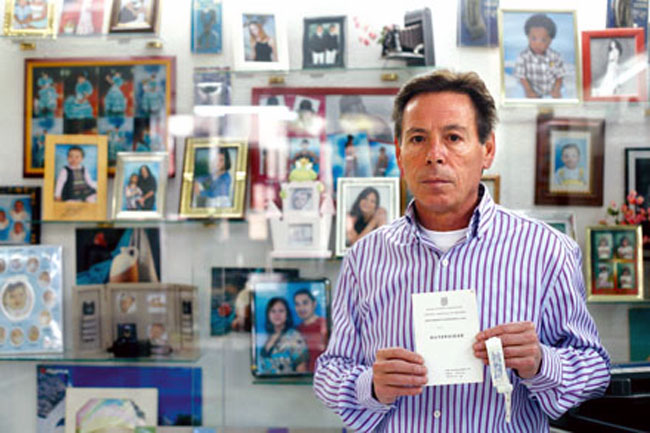 MATÍAS LÓPEZ. El padre de las gemelas supuestamente muertas explica a DIAGONAL desde su tienda de fotografía que La Paz no les entregó ningún papel: «Ahora hemos solicitado la historia clínica pero nos están dando largas desde hace ocho meses”. Foto: David Fernández.