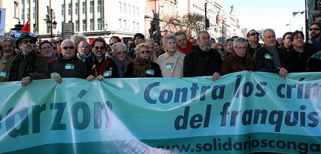 Euronews recoge: “Miles de manifestantes salieron a las calles de Madrid el domingo en apoyo del importante juez Baltasar Garzón. Garzón está siendo juzgado por abuso de poder por haber investigado la atrocidades cometidas durante la época del general Franco. Más de 100.000 personas murieron en la guerra civil española y la posterior dictadura de Franco. Esos crímenes están cubiertos por una ley de amnistía de 1977. Cayo Lara, un político del partido Izquierda Unida, dijo: “No podemos permitir que se construya un puente de oro para la corrupción en España y quienes quieren levantar un muro de silencio sobre nuestra historia”.