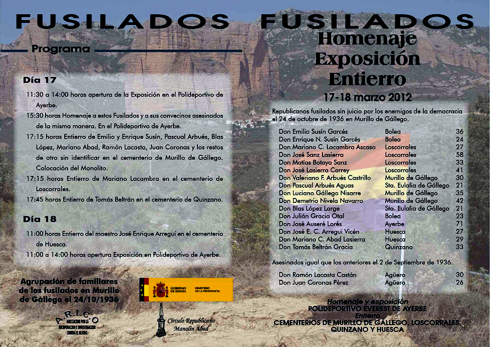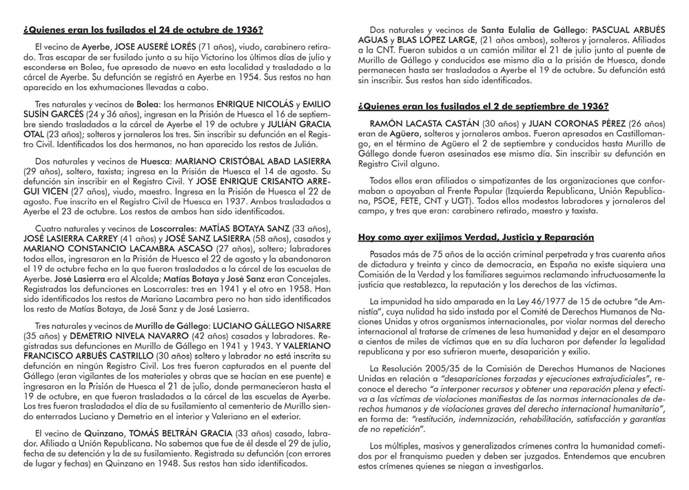 He visto la exposición en el polideportivo de Ayerbe, sobrecoje el corazón, muy bien docomentada, tanto en las listas de los fallecidos como los detalles de donde fueron asesinados. Un sobresaliente a los organizadores de este evento.