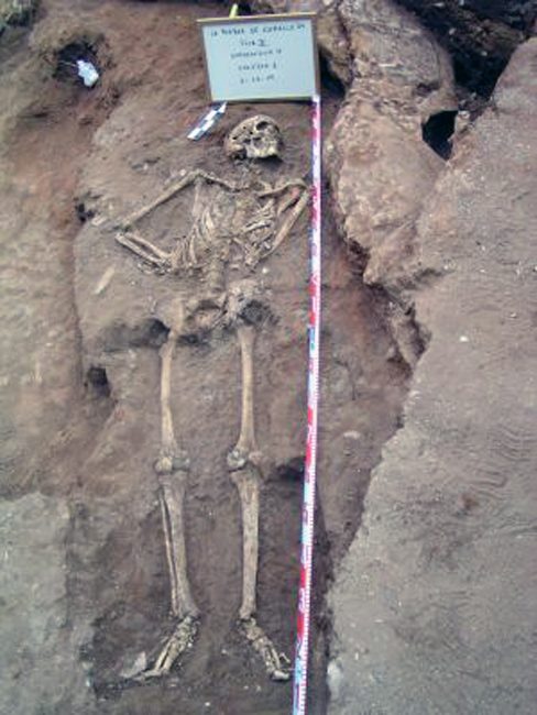 Esqueleto de una fosa común en La Puebla de Cazalla (Sevilla).