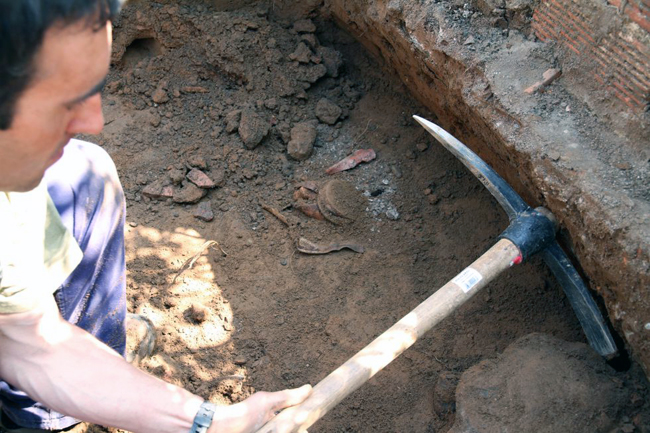 Primeros restos hallados en la fosa. / ÓSCAR RODRÍGUEZ