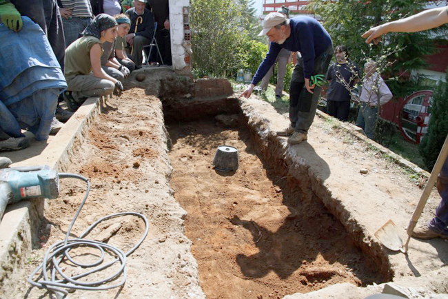 Exhumación en Espinosa de los Monteros de una fosa en mitad de una acera y un jardín privado. / ÓSCAR RODRÍGUEZ