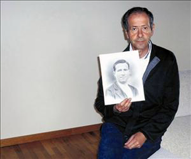 El nieto del alcalde republicano, Eloy Gundín, con una foto de su abuelo represaliado en la Guerra Civil. L.C.
