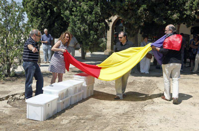 Hace un año, el Foro se interesó por ellos y ayer, en una ceremonia con banderas republicanas, música clásica y canciones de Labordeta, todos fueron inhumados, tres en nichos y cuatro en una misma tumba excavada en el suelo.