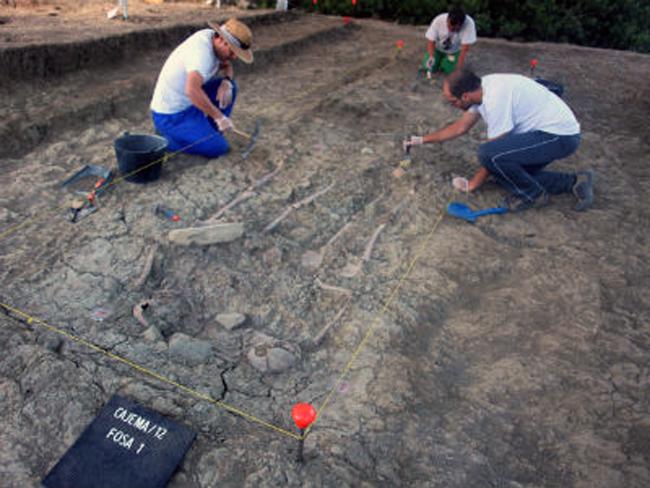 El historiador Fernando Sigler realiza un seguimiento permanente de estos trabajos: «Son muchos los especialistas que están documentando esta exhumación, desde Juan Luis Castro, quien junto a Guijo estuvo en Gerena, en la localización de la fosa de las diecisiete rosas. Los nueve cadáveres inicialmente localizados correspondían a una primera capa, situada tan sólo a cincuenta centímetros de profundidad pero los cinco restantes ya se encontraban en una capa inferior. No sabemos cuántas más hay hacia abajo. No queremos decir nada hasta que se pronuncien los profesionales».