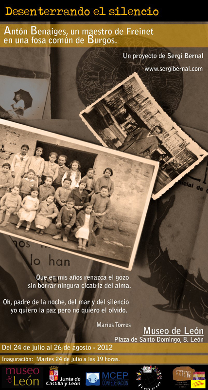 La inauguración de la exposición temporal Desenterrando el silencio, en el Museo de León (edificio Pallarés, Plaza de Santo Domingo, 8, León) se producirá este martes día 24 de julio a las 19 h. y contará con la asistencia del autor, que comentará su proyecto. A continuación intervendrá Fernando Jiménez como investigador y colaborador, y, por último, Sebastián Gertrúdix como colaborador y miembro representante del Movimiento Cooperativo de Escuela Popular. Estos son algunos datos sobre ellos.
