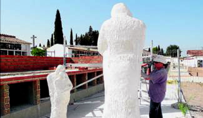 Bajo esta premisa, operarios municipales trabajan ya en la construcción del muro que acogerá las placas con los nombres de víctimas del franquismo en un período que va desde el año 1936 a 1944. Por otro lado, la escultura Carmen Carmona Huelva ultima el monolito que será instalado en la fosa común. Carmona explica que es una escultura figurativa que significa que las víctimas son hombres y mujeres, la artista ha subrayado su obra con gestos de tristeza y resignación. La escultura esculpida a golpe de martillo y cincel en piedra caliza presenta una altura de 2,5 metros y un peso final de unos 3.000 kilos.