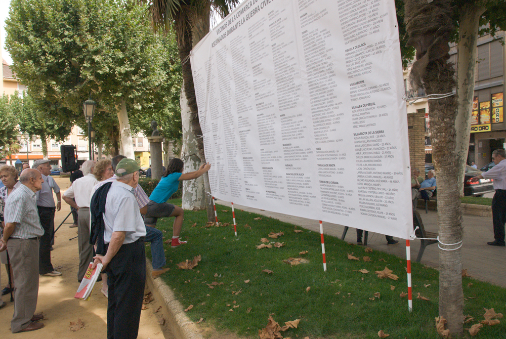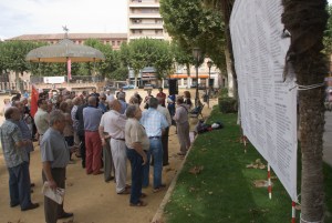 El pasado día 23 no pude estar en la concentración de Calatayud, porque me encontraba en Francia en la zona de normandia, viendo con envidia la cantidad de monumentos conmemorativos con muchos, muchos nombres de los fallecidos en las guerras mundiales, rindiendoles su país un homenaje por su luchar por la libertad.Por cierto que aparezca en la foto el anterior alcalde de Calatayud me parece un ejercicio de cinismo por su parte, porque el monumento ya podía estar colocado si el se hubiera molestado un poco. LOLA.