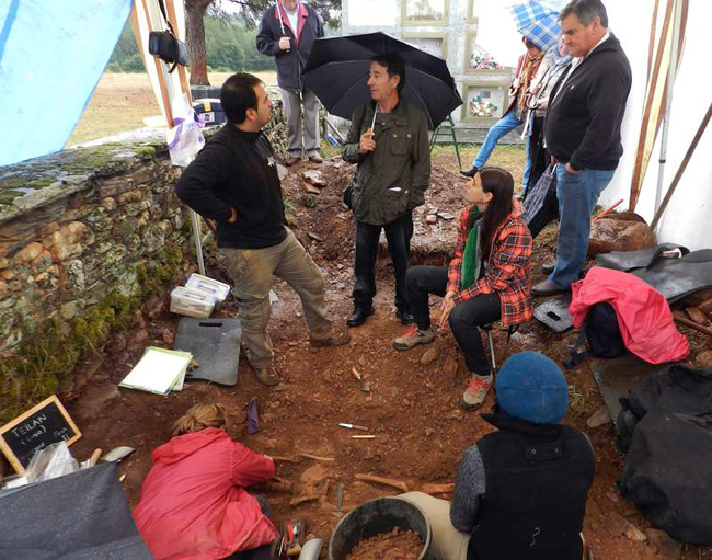 Santiago Álvarez, hijo de ‘Gasta’, recibe explicaciones mientras exhuman los restos de su padre.armh
