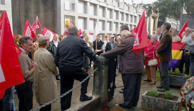 E.G. – A GUARDA «En el campo de concentración de los Jesuitas, en Camposancos, se hacinaban miles de personas. Infinidad de gente fue asesinada vilmente» expuso en su discurso Benxamín Rocha Coladas, responsable de comunicación de la Unión Comarcal de CC OO de Vigo, durante el homenaje anual que la Agrupación Comarcal de Pensionistas e Xubilados de CC OO de Vigo-Baixo Miño rinde a los 48 represaliados republicanos de la Guerra Civil que permanecen en la fosa común de Sestás, en el cementerio de Camposancos (A Guarda).