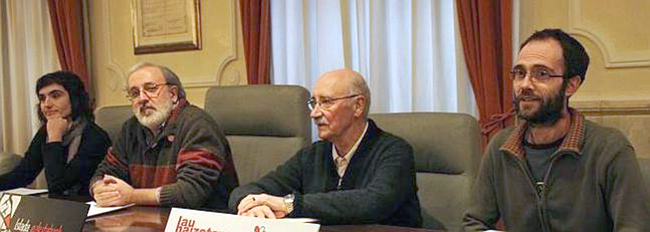 El alcalde Pablo Barrio, Arantxa Erasun de la fundación Memoria Vasca, Mikel Amenabar del grupo ‘Islada ezkutatuak’ y Xabier Erasun de la fundación ‘Lau haizetara gogoan’ explicaron en una rueda de prensa el trabajo que han llevado a cabo hasta ahora para conocer la memoria histórica de esta localidad. Barrio explicó que «queremos conocer los sucesos que se vivieron en el 1936 y posteriores años y que han estado escondidos». Mikel Amenabar apuntó, posteriormente, que «en la primera reunión vimos que había cantidad de gente que había vivido la guerra o los que fueron al exilio y nos pareció que esos testimonios no se tenían que perder». Erauskin explicó que ayudarán al grupo ‘Islada ezkutatuak’ y al Ayuntamiento de Lasarte-Oria, «utilizando archivos históricos y asesorando para que se investigue y se divulgue la verdad».