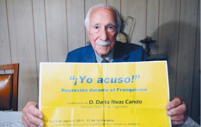 –La querella que hoy se tramita en la justicia argentina es la única en el mundo contra los crímenes del franquismo, porque el intento anterior impulsado por (Baltasar) Garzón fue vergonzosamente archivado. Pero hay que entender una cosa: a Garzón lo voltearon por querer investigar la represión, pero además, por meterse contra la corrupción, contra los que en España históricamente se robaron todo. El franquismo sigue estando en el gobierno, porque sigue estando su legado, el miedo que generó. Algo increíble tratándose de (Francisco) Franco, un verdadero cobarde, posiblemente el general más cobarde del ejército español. Mandaba al frente a pobres soldados, y les robaba sus condecoraciones. Pero con los muertos sí era valiente. Cortaba la cabeza de los moros y se las exhibía a Primo de Rivera en punta de lanza. Después, durante la Guerra Civil, no tuvo problemas en traer a 80 mil moros para matar al pueblo español. La sociedad española es extraña. En 1952, yo mismo vi cómo aplaudían a Franco en La Coruña las mujeres de luto, al poco tiempo de que sus maridos habían muerto en la guerra. Por eso, digo que allá sigue el franquismo. Rodrigo Ratto, ex ministro de Finanzas, fundió el banco nacional y nadie hizo nada.
