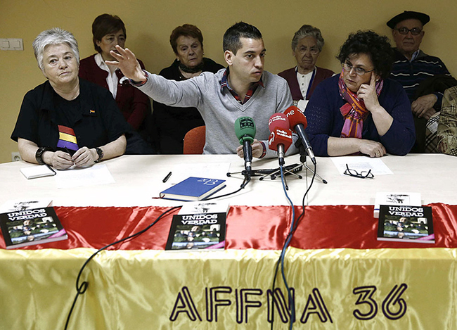 El portavoz y la presidenta de la Asociación de Familiares de Fusilados de Navarra, Joseba Eceolaza (c) y Olga Alcega (d).. efe