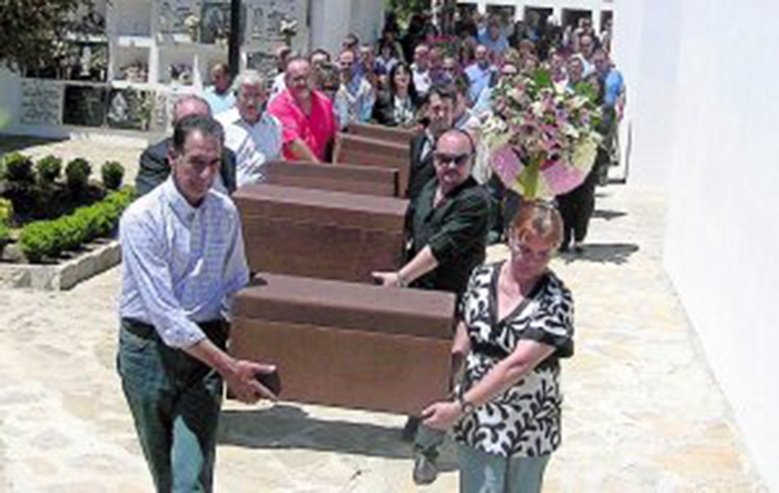 Momento del entierro de los restos encontrados en la fosa de las mujeres. :: L. V.