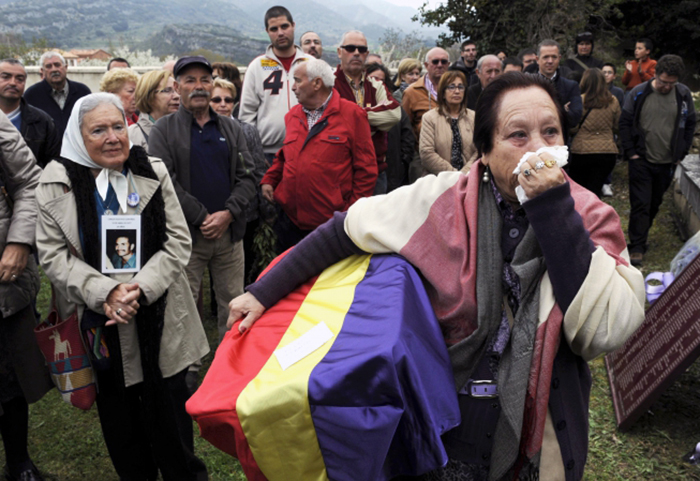 memoria histórica. Juana Gutiérrez, con los restos de su abuelo, en Valdenoceda