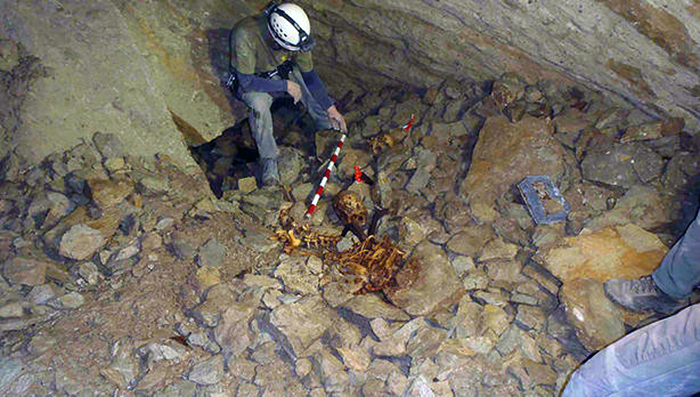Imagen de uno de los esqueletos hallados en la sima de Urbasa.