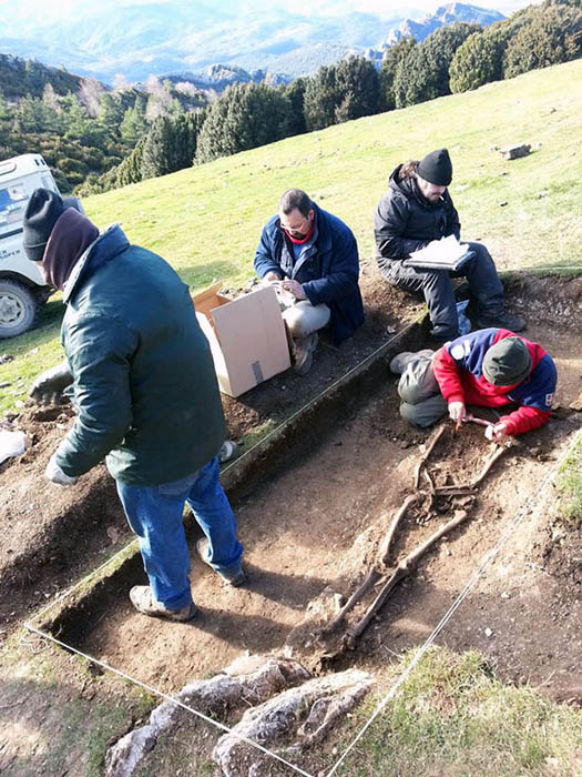 Tras realizar diversos sondeos arqueológicos en la zona de la cueva, tanto dentro como en sus inmediaciones, no hallaron ningún indicio del enterramiento. “Así pues, nos planteamos volver de nuevo a la parte superior de la pradera, frente a la ermita de Santo Domingo, y buscar sus restos en los alrededores de donde apareció su hermana”, explica Charata.