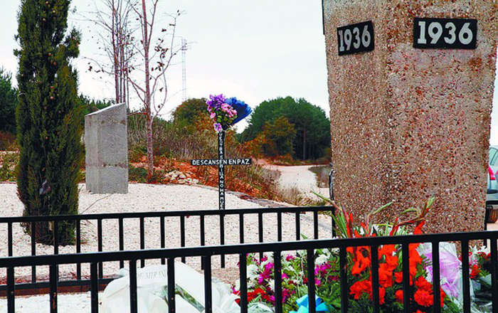 Monolito levantado en La Pedraja en homenaje a los asesinados, junto a las fosas donde aparecieron los cuerpos. DB