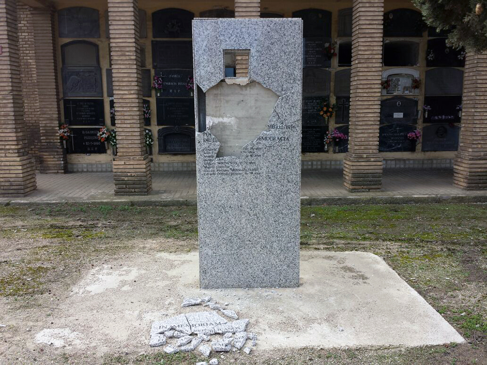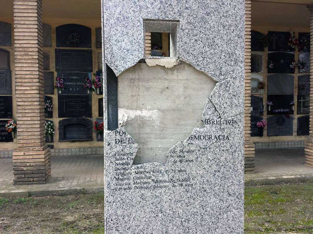 Los autores de esta profanación han realizado una nueva afrenta, un nuevo ultraje, una nueva humillación a las víctimas. Su sintonía con el franquismo y con las ideas que ensangrentaron Europa en los años 30-40 del pasado siglo, lo atestigua la firma con la que han puesto autoría a este desmán en el cementerio de La Cartuja. No queremos imaginar que alguna institución pública lo pueda calificar de gamberrada o lo equipare al incendio de un contenedor o al deterioro del mobiliario urbano.