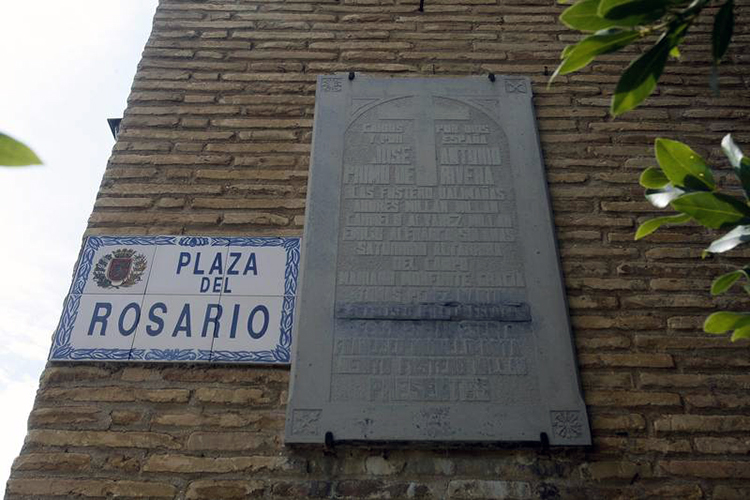 Placa franquista en la iglesia de la plaza del Rosario, en Peñaflor. – Foto:JAIME GALINDO