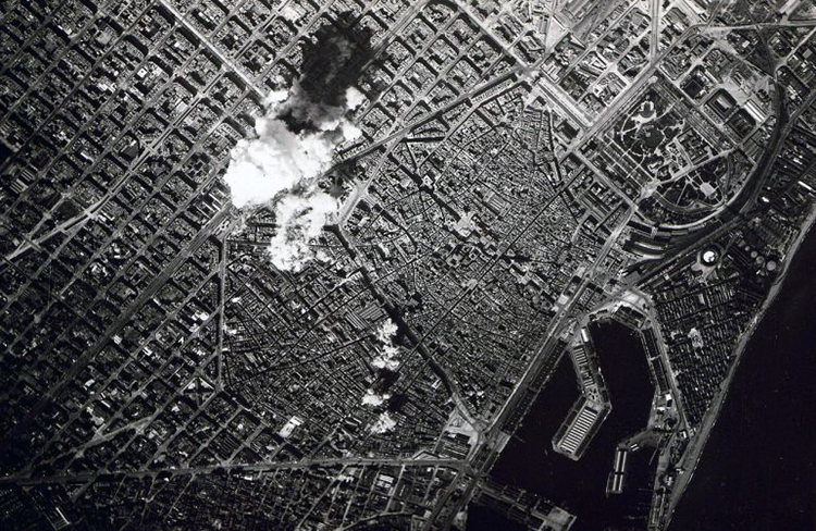 La capital catalana vivió los ataques aéreos más cruentos los días 16, 17 y 18 de marzo de 1938 con un millar de muertos, 1.500 heridos y decenas de edificios destruidos