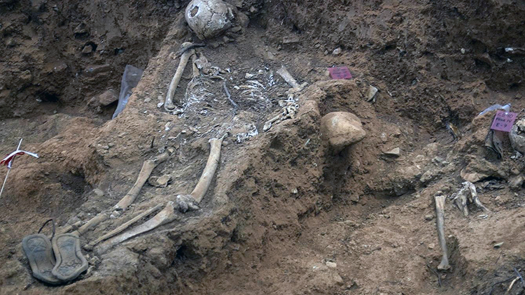 Fosa común de Cazalla de la Sierra (Sevilla) con restos de fusilados que corresponden a ocho personas con evidentes signos de violencia y casquillos de bala en las proximidades. EFE