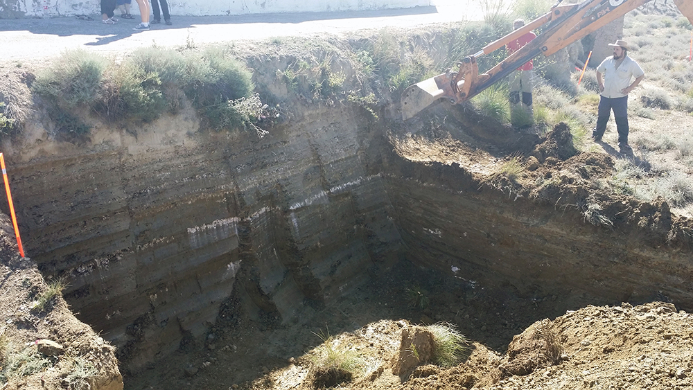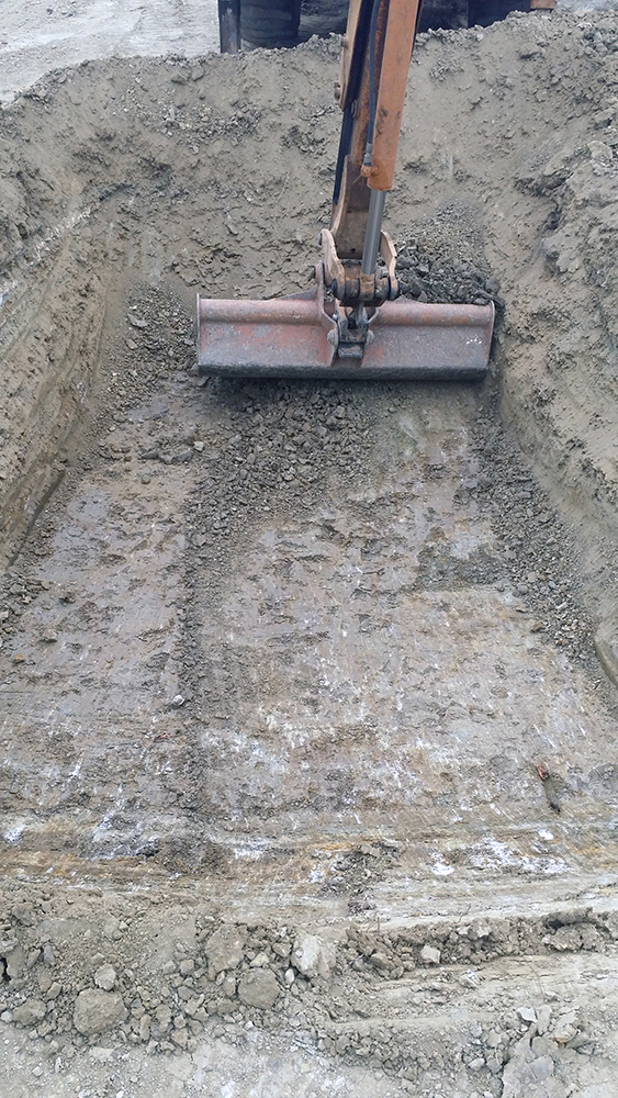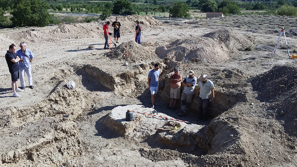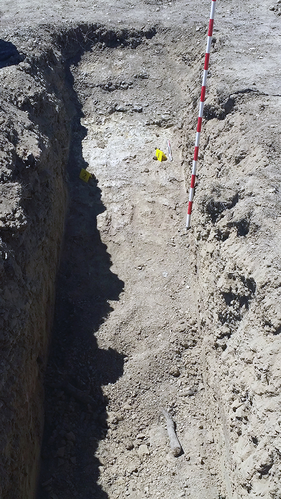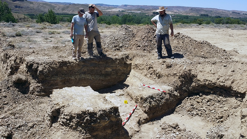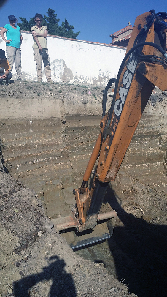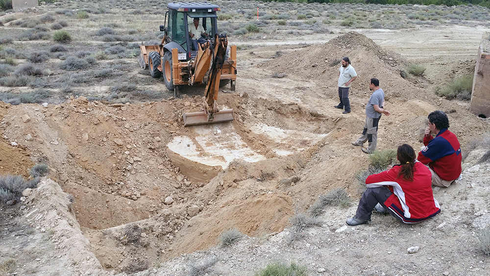 Como último recurso se planteó por parte del equipo arqueológico la realización de zanjas paralelas y distantes 1 metro entre sí, excavadas con ayuda de medios mecánicos y bajo supervisión arqueológica. Cuando ya había sondeado de esta manera aproximadamente la mitad del campo, con una superficie total de 1800 m2, y comenzaba a cundir el desánimo, se localizó la fosa a poco más de medio metro de profundidad. La causa hay que buscarla en el aterrazamiento del terreno hace unos 40 años con la finalidad de plantar frutales y establecer unas acequias para el riego, este hecho obligó a igualar el desnivel del terreno y eliminó aproximadamente un metro de altura de tierra en este punto.