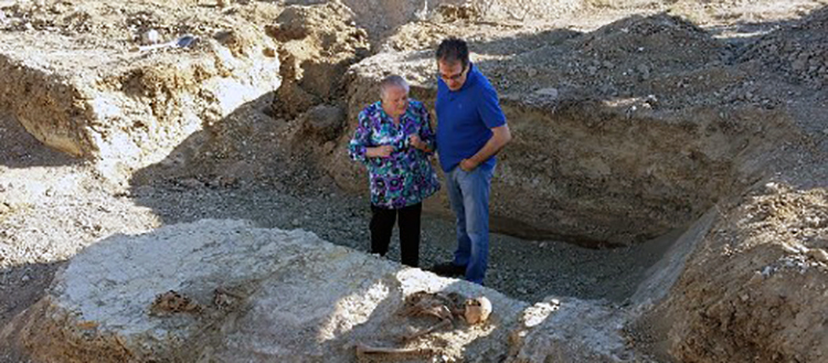 Miguel y Leonor observan los restos de Bernabé una vez realizada la exhumación.ARICO