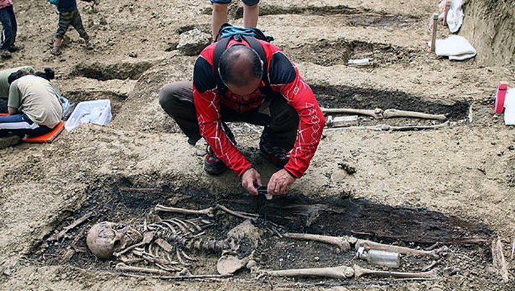 Imagen de las exhumaciones realizadas en el ‘cementerio de las botellas’, situado junto al fuerte de San Cristóbal. (Cascante)